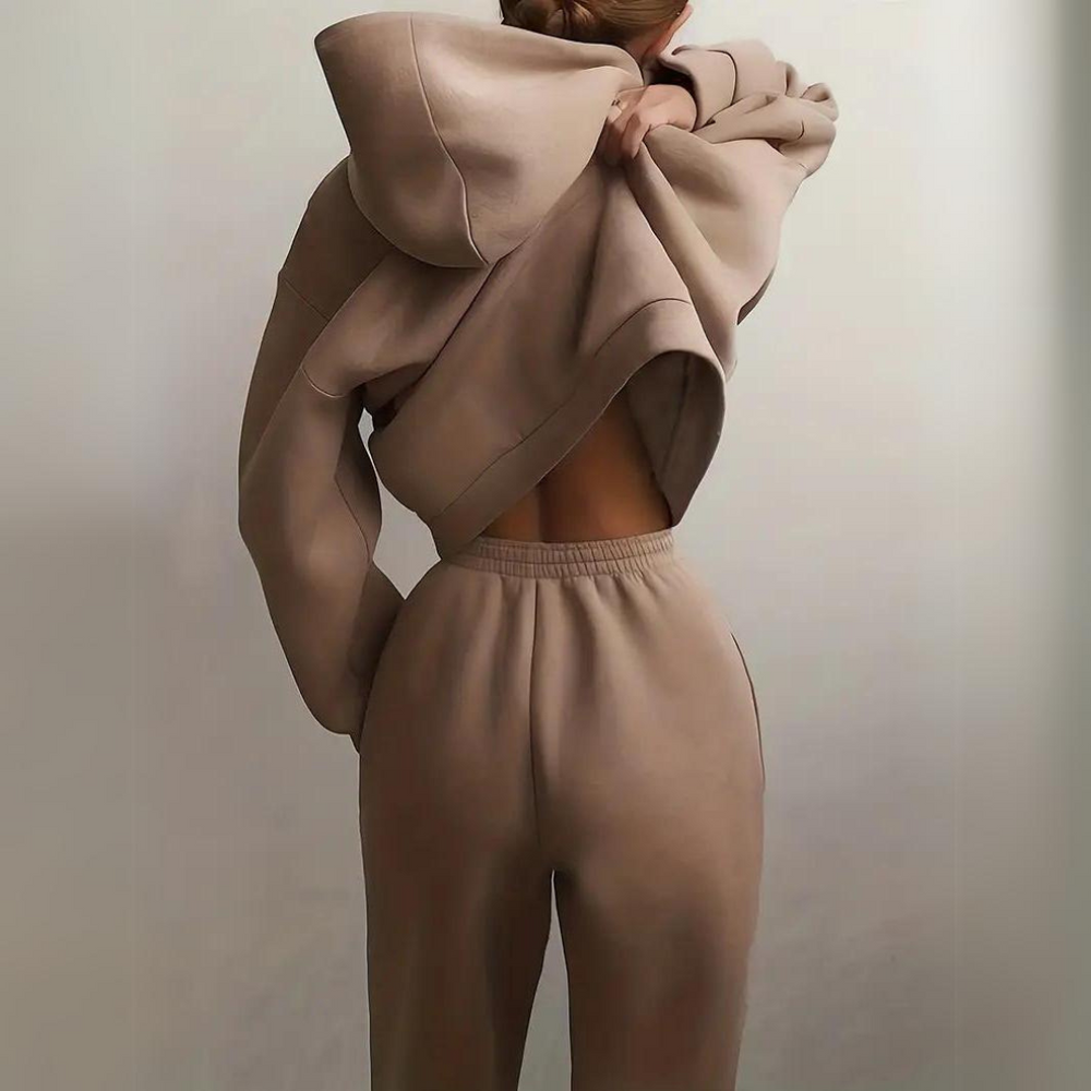 Il set Sveva™ combina stile e praticità in un design che ti offre il massimo comfort durante tutta la giornata. Perfetto per chi cerca un look casual ma elegante, questo set felpa e pantaloni è ideale per rilassarsi a casa, passeggiare in città o per svolgere le tue attività quotidiane senza mai rinunciare allo stile.